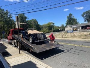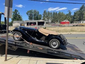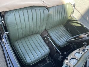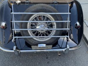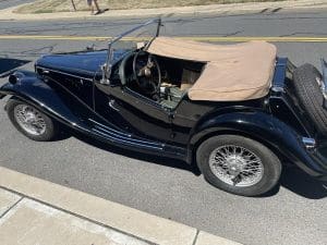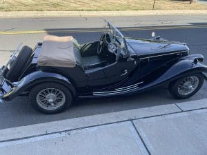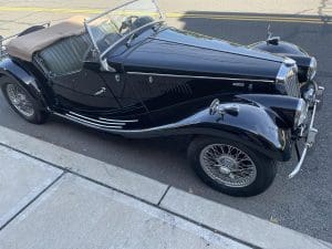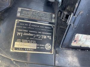 Entering the mid-1950”s, the MG TD was becoming a bit outdated while other British sports cars were gaining more power and sleeker lines. MG had a sleeker and more powerful roadster on the drawing boards, but development was taking longer than anticipated. Meanwhile, a bit sleeker T-Series car was built with a sloping radiator grill replacing the vertical one, headlamps flared into the front fenders and many facia and interior changes. Although the “modernizing” met with disapproval of MG aficionados, the TF has now become one of the most collectible and desirable models of the MG family. MG planned on delivering the new and more powerful MGA by 1955, but its development was still dragging on. MG’s wise decision was to put the new and more powerful 1500 cc engine designed for the “A” into the “TF.” So the MG TF “1500” was introduced in the end of 1954. Horsepower was increased from 52 to 63 and top speed was increased from 80 mph tom 88 mph. Just 3,400 of these cars were built (as opposed to 29,664 MG TD’s) and the TF “1500” has become very collectible today. Our car is an original, numbers-matching TF “1500” which is accompanied by its original tools, owner’s manual and shop manual as well as its British Industry Heritage Trust Certificate—which shows the car to be originally finished in black, although with red leather, and to have been built from November 2-4, 1954. The Certificate also confirms that the car was sold new with the very desirable wire wheel option. The car was delivered new to a Chicago area enthusiast who, in the mid 1960’s, sold it to a close friend, also near Chicago, with mileage of @29,000. During his long-term ownership, that second owner replaced the leather seating surfaces and had a light respray performed on the body in the original color. He kept the car until 2006 when, then with @33,000 miles, the car was sold to a long-time customer of ours in Pennsylvania who has pampered and over-maintained the car for 16 years. We have obtained 7 cars from him, this being the one which he always said was his favorite and would be the last to go. It is a wonderfully happy pristine, extremely original example of the rare “TF 1500” with a current total mileage of 34,128.