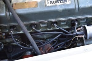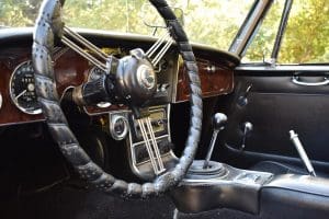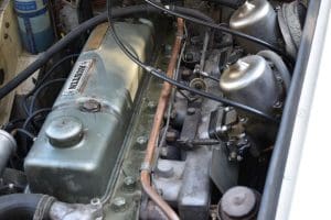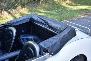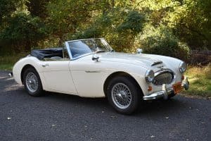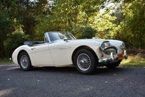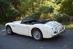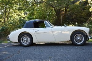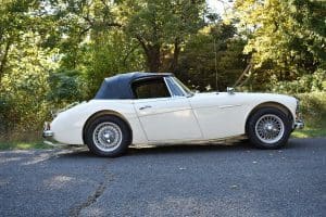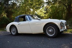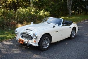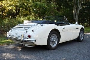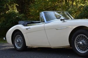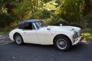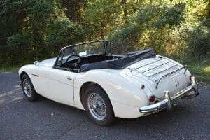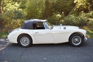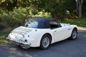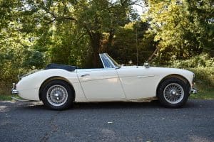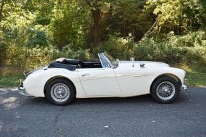 Our car is one of the last series. We purchased it from its third owner, a true enthusiast living in Louisville, Kentucky. It had been kept through the years with all of its original documentation, including the 8-18-65 sale invoice to its original owner in Lincoln, Nebraska , IBM data card, BMC radio guarantee,delivery papers, service records, owner's and shop manuals and original showroom brochure That owner commissioned a top-quality repaint of the car in its original Ivory color scheme. The original black interior has been untouched, the polished walnut facia is beautiful and the entire interior remains in splendid condition. The former owner kept the car for fifteen years before selling the car to us, thoroughly vetting The Stable prior to allowing us to purchase the car. The car is accompanied by its British Heritage Trust Certificate showing the car to be born in Ivory with black interior, convertible top and boot and fitted with "knock-off" wire wheels, adjustable steering column rear luggage rack and AM radio. The car's Kentucky owner carefully replaced the original radio, replacing it with a more modern AM-FM unit and saving the original one with the car. He also installed very discreet driver and passenger map lights. This is an exceptionally well-documented, pristine and correct example of the last series of Austin Healey. It drives fabulously well, just as these cars did when new. It has covered just 52,270 miles in its 55 years of driving and is now being offered at SOLD!