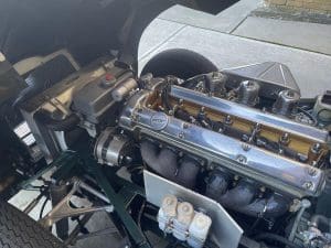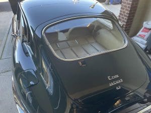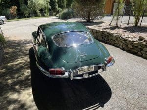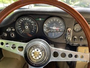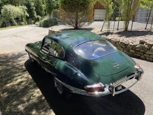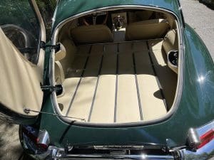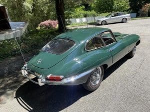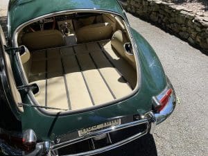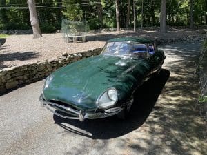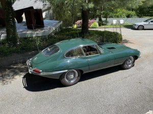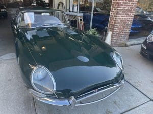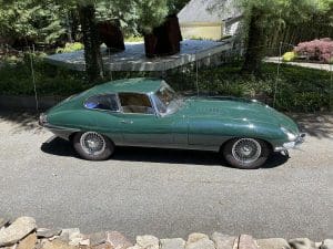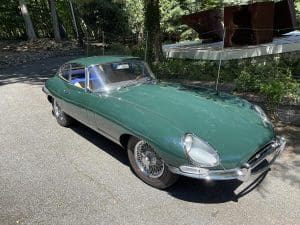 1966 JAGUAR “E-TYPE” SERIES 1 COUPE #1E33380. (Stock #4190.)The Series 1 XKE coupe is certainly one of the best looking post-war sports cars ever! Its sensuous lines are beyond reproach and its performance capabilities match its stunning design. Introduced in 1961 with a fabulous 3.8 litre, twin cam, triple carburetor engine and a 4-speed manual transmission, the car was capable of a 150 mile per hour top speed and its acceleration surpassed that of many high-performance European cars costing many times the XKE’s price. 1965 saw the arrival of an improved Series One—the exactly same classically designed body with more comfortable seats and a 4.2 litre , twin cam, triple carburetor engine with a now fully synchronized 4-speed manual transmission. Our car is finished in classic Dark (British Racing) Green with beige leather interior and 15 inch chrome “knock-off” wire wheels. This is exactly as the car was completed on August 24, 1966. The Jaguar Heritage Trust Certificate is present and confirms not only the original colors, but also original matching numbers. The car has had one local (Mendham) owner for many years and has been kept in excellent driving condition. 73,537 miles. SOLD!