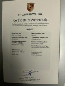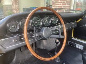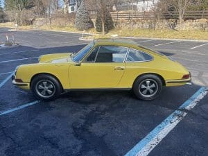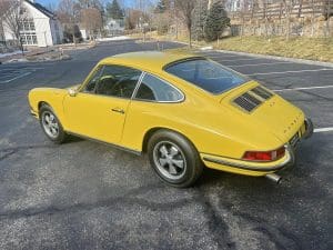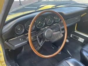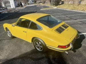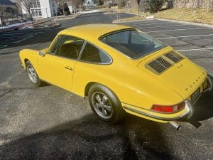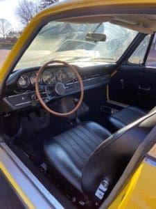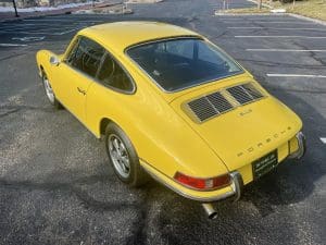 These factory s/r, swb, “S” cars are pretty much like hens’ teeth to find, and we are proud to offer an absolutely pristine example, the result of a nut-and-bolt restoration. Accompanied by its original “COA” showing the car to having been born in yellow with black interior—as it is now. This also documents that the car is a true 911 S and was factory-built with a sliding steel sunroof.