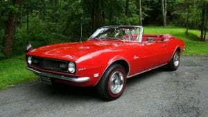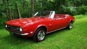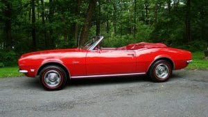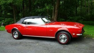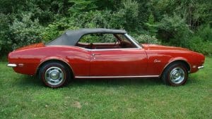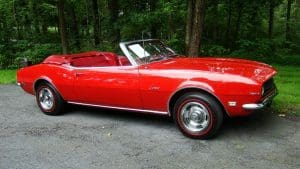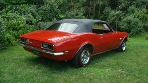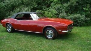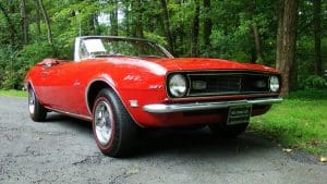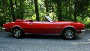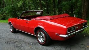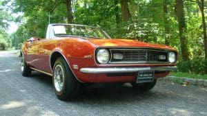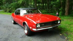 1968 CHEVROLET CAMARO CONVERTIBLE #124678N334762. (Stock #4117.) Late in 1966, General Motors introduced the new competitor to Ford’s Mustang, the Chevy Camaro A great looking “pony car” which caught the hearts of GM aficionados in the manner in which Ford did so with Ford folks with the Mustang. Our Camaro was sold by Reedman Motors in Langhorne, Pennsylvania in November, 1967. It was purchased there by a local (Scotch Plains) man for his son serving in Viet Nam. The father ended-up keeping the car for the next 33 years, driving it on occasion and covering just 32,197 miles, fewer than 1000 miles per year. At an advanced age, he sold the car to a car-collector neighbor who, respecting the provenance of the car, also drove the car very infrequently, covering fewer than 4,000 miles in his 19 years of ownership. He has now traded-in the car to us on a gorgeous Porsche 911 cabriolet for his wife. The supporting documents of the original Reedman sale invoice and a copy of the title when the car went from owner #1 to owner #2—then with 32,197 miles--are still present with the car. As the car was intended for a young man, it was delivered in dark Matador Red with dark red interior and black convertible top and top boot. More importantly, the car was built the healthy 327 cubic inch V-8 engine and a 3-speed manual transmission with a floor shift. The car was also ordered with a “push-button radio” at an additional cost of $65.The car has been maintained in absolutely beautiful and rust-free condition over the years and is a true time-warp example of a very neat car. It would be a very difficult task to duplicate this car! 35,956 miles. SOLD!