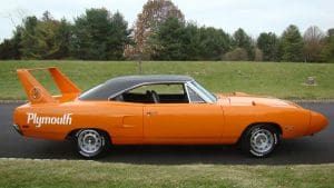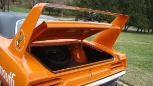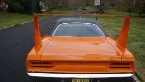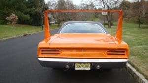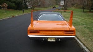 1970 PLYMOUTH SUPERBIRD #RM23V0A162352. (Stock #4063). In the late 1960’s, Chrysler Corporation decided to take their racing endeavors up a notch and, in 1969, introduced the Dodge Daytona in order to lure Richard Petty, their former racing champion, back from Ford. Upon driving the new Daytona race car, Petty returned to Chrysler and a new chapter was opened in Nascar Racing. Following 1 year of production of the Daytona, Chrysler introduced the Plymouth Superbird. The lure worked and Petty won eight races that season in the new 200 mph Superbird. Dubbed as “The Winged Warriors,” the new Superbirds became the contender on Nascar tracks. Nascar rules stated that in order for a race car to qualify, 500 street-going examples of the car must be produced. Nascar made it tougher on Chrysler and demanded that there must be 1 retail Superbird built for every 2 Plymouth dealerships in the U.S. , resulting in 1928 street-going Superbirds being built during the 1970 model year. Of that number, just 16 were built with the huge “Super Commando” 440 cubic inch “Six Pack” engine. With 3x2 barrel carburetors sitting on top of a 390 horsepower, 10.5:1 compression engine producing 490 foot pounds of torque with high-lift, low-taper cams, Moly-filled top rings, chrome-flashed valve stems, magna-fluxed connecting rods and wedge-shaped combustion chambers, the Superbird entered the 200 mph club. As a result, and since that performance exceeded the technology of the car’s tires, Nascar prohibited the cars from racing in 1971 and introduced a new rule limiting engine size to 5 liters. Ending an era, the Superbird was probably the most recognizable street car to be built to meet the Nascar homologation requirements to build street cars for competition purposes.