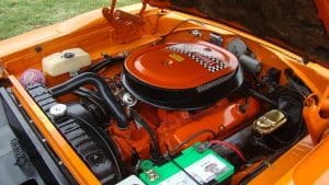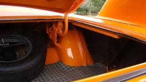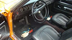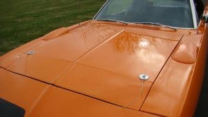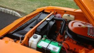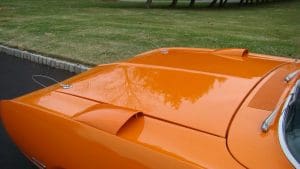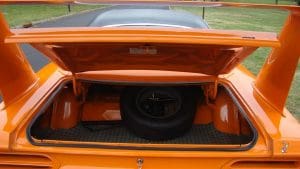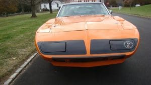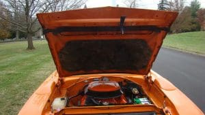 Our car was ordered in perhaps also the most recognizable color of “Vitamin C Orange” and was refinished many years ago in that same color. The optional bucket seat interior is original and in very good condition as are the optional 15" wheels and automatic transmission. The engine bay is most impressive and immaculate. Standard to all Superbirds is the Aerodynamic nose cone, front spoiler and 25” tall rear stabilizer, a streamlined convex rear window, haavy -duty suspension and brakes (power disc), performance axle package and power steering. Our car has all of that and is exceptionally original and correct with one local owner for the past 25 years It is accompanied by its original owner’s manual and warranty book, factory brochures and dealer information sheets, a “Johnny Lightening” die cast metal model- still in original sealed box-- and folders of related material. 55,600 miles.SOLD!
