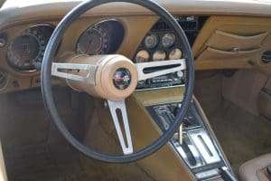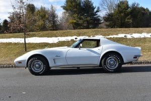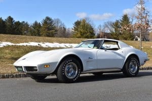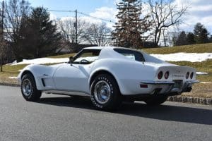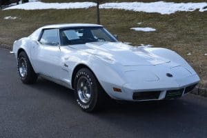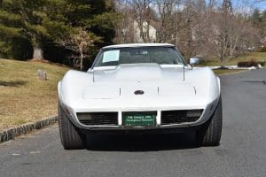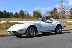 1973 CORVETTE T-TOP COUPE #1737J38416910. (Stock #528.) 1973 was the only year for Corvette with a safety “impact” bumper in the front and chrome bumper half sections in the rear, and final year before the introduction of catalytic converters. Ours is finished in white with original tan interior, is fitted with removable "T-Top” roof panels, factory air conditioning, electric windows, an AM-FM stereo and still has part of its original “tank sticker” preserved with the car. Originally an L-48, the car was given a new "crate engine” (350 cubic inch V-8) within the past 1000 miles and has had an amazing amount of mechanical servicing performed recently. That work includes all new brakes including calipers, rotors, hoses, master cylinder, parking brake, air conditioning system, new distributor, and internals, a carburetor rebuild, wiper and turn signal repairs, headlight actuators rebuilt, new fuel tank and sending unit installed, etc. In short, this is a handsome vintage Corvette ready to be driven and enjoyed with confidence. 96,583 miles. SOLD!