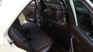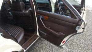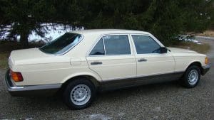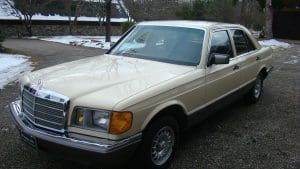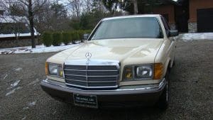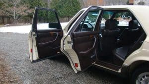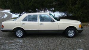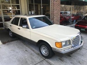 1982 MERCEDES-BENZ 300SD TURBODIESEL SEDAN #WDBCB20AXCB026902. (Stock #4071.) The “W-126” series turbo-diesel is well-known as one of the world’s cars with the greatest longevity. Owners reporting these cars with mileages approaching or exceeding 500,000 miles are common and, when cared-for properly, the cars seem to be virtually indestructible. As well as being extraordinarily durable, the cars are luxurious, comfortable and efficient. They are 2-ton, 5-passenger luxury cars which, when ordered with the renowned 5-cylinder turbo-charged diesel engine and 4-speed automatic transmission, can deliver 30+ mpg. They are aerodynamically cleaner, due to wind-tunnel design, than earlier cars and much less complicated than later cars. They still offer modern amenities such as cruise control, climate control, electric windows, automatic locks, electric sunroof, electric rear-window defogger, twin remote outside rear-view mirrors, Becker “Grand Prix” signal-seeking AM-FM/cassette stereo system with electric antenna, 15” alloy wheels and fog lights, along with full leather interior with beautiful zebrano wood dashboard and cabin trim. Since these cars are almost indestructible, they tend to be driven for hundreds of thousands of miles. Our car is the exception to the high-mileage status of most. A local (Tewksbury) car which has just recently turned 40,000 miles, it was purchased new for the lady of the house and driven exclusively by her-- and then only in ideal weather conditions. The car is 100% original and in near-new condition throughout. Finished in beautiful light ivory with no chips or dings and deep tobacco brown leather showing no wear, the car has near-flawless chrome, glass, headliner, wheels, engine and trunk compartments, etc. It drives fabulously well and, should someone wish to enter the car in MBCA shows, certainly has potential to be a class winner. All original manuals are present as are the original unwrapped tool kit and first aid kit. 40,811 miles. SOLD!