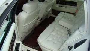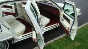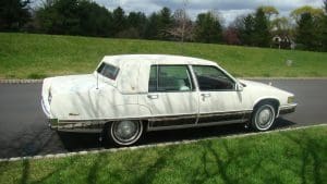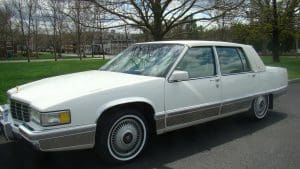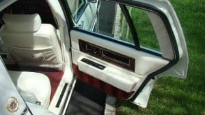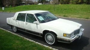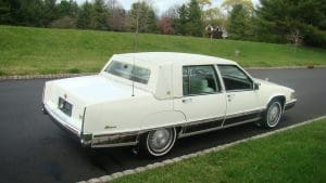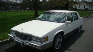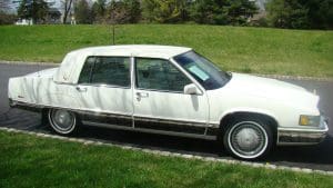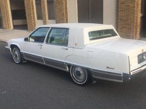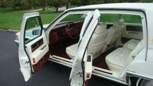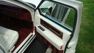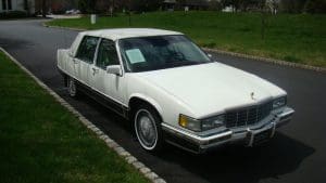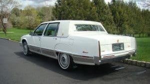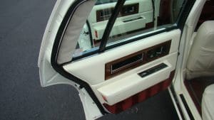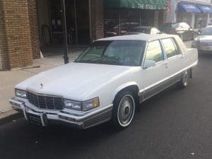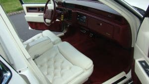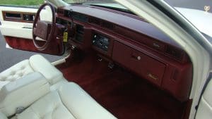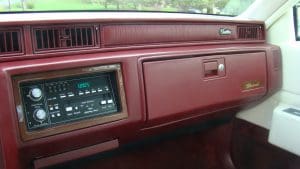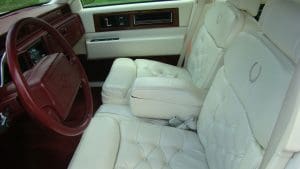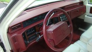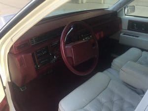 1991 CADILLAC FLEETWOOD SEDAN # 1G6CB53B5M4274975. (Stock #4086.) Cadillac has always represented quality and luxury—in fact has long been known as “The Standard of the World.” The Fleetwood has the been the ultra-luxury model of Cadillac for many decades and one drive in our car will demonstrate the success which Cadillac has had in creating a pleasurable “luxo-cruiser.” This series of front-wheel drive, V-8-powered luxury sedans was built from 1989 through 1992. For the 1991 model, the acclaimed 4.9 litre, fuel-injected V-8 engine was introduced, offering impressive performance with 4-wheel power disc brakes and driver-side airbag adding to the list of safety features. . The fabulous supple leather interior is in amazingly fine unmarked original condition as is every other aspect of the car. Luxury touches abound and the car is loaded with accessories and convenience features such as electric: windows, locks, seats, mirrors and trunk,lid and fuel door releases, tilt steering wheel, cruise control, climate control--directing heat and air conditioning to both front and rear passengers, lighted vanity mirrors for both front passengers, rear seat reading lamps, factory tinted glass and shaded windshield, etc. Our car was traded into us by a local woman who had purchased it from a friend who had owned the car since 1999. It has just been treated to new brakes and tires and drives just as it appears—nearly new. It is accompanied by original manuals and extra keys. 72,827 miles. SOLD!