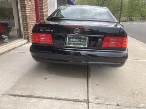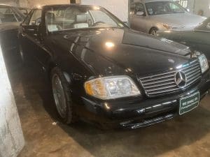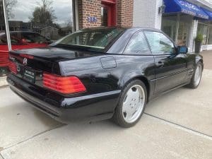 The 1990s brought a new era of design for the entire line up at Mercedes-Benz. The traditional squared lines and chrome trim were were replaced by a more modern sports car shape with color-keyed bumpers, mirrors, and body side moldings. The exterior presented much cleaner design. The convertible SL Class, the R129 models, remained popular, the new 6.0L V12 engine was added to the lineup in 1993 which offered 389 horsepower and 420 lb. ft. of torque, paired to a 5-speed automatic transmission. The port package adds a unique two-toned leather interior, AMG suspension and wheels. SOLD!