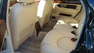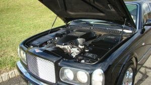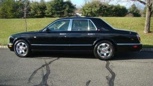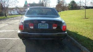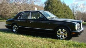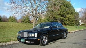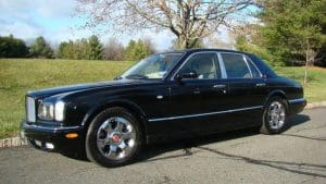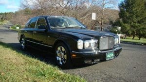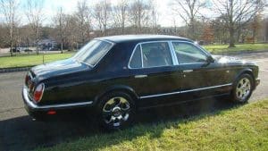 2001 BENTLEY ARNAGE SALOON #SCBLC31E71CX06174.(Stock #4090). The Red Label Arnage is a fabulous car. Its Garrett turbocharged, 6.75 litre, 400 horsepower (with 619 ft.lbs of torque), Rolls-Royce V-8 engine and adaptive automatic transmission with Sport Mode, combine to offer a 0-60 acceleration time of 5.9 seconds and a top speed electronically limited to 155 miles per hour—this from a 5,560 pound, absolute luxury car! Finished in Mason's Black with the cabin surrounding the occupants in fine tan Connolly hides, Wilton carpets and polished burr walnut facia and cabin trim along with a multitude of luxury features. Safety features include twin airbags, side impact bars, 4-wheel power ventilated disc brakes with brake assist, electronic stability control, a security system and panic alarm, etc. Convenience features range from a factory navigation system to a fabulous stereo system and every electronic accouterments from electric sunroof to headlamp washers. Our car was sold new in Holmdel, NJ and was dealer-serviced for their 11 years and 30,000 miles of ownership, being garaged--depending on the season-- either in Holmdel or Palm Beach, Florida. It then passed on, with 31,267 miles, to a Stable collector/customer in Stockton, NJ. . In 2015, the Bentley was traded in to us by its collector/owner, then with 33,355 miles, on a pristine 1951 Ford Country Squire wagon. We then sold the car to another Stable customer who took the car home to Rancho Mirage, California where it became known as “big Ben” as it shared a garage with “Little Ben”, a Bentley GTC convertible. Upon that customer's passing, we repurchased the car from his estate, installing the prerequisite updated engine head gasket at 38,892 miles. Now, with a mileage of 41,329, the Bentley is ready for the next chapter in its interesting career. $45,000