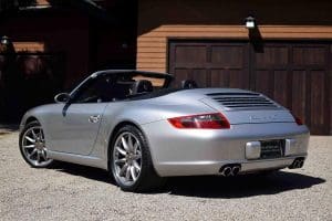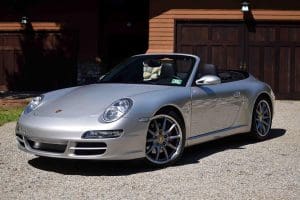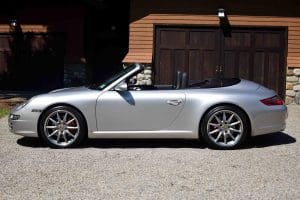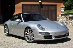 (Stock #4082.) The wide-body “S” version of the Carrera is not only striking in appearance, but also in performance. The 355 horsepower, 11.8:1 compression, DOHC 6-cylinder engine, 6-speed manual transmission and traction control present a 0-60 mph acceleration time of 4.6 seconds and a top speed of 188+ mph. Our car had just one local (Holmdel) owner prior to us selling the car in 2012, then with 23,082 miles, to a local (Tewksbury) multi-Porsche owner customer. In 2018, that owner replaced the car with a new Porsche and we sold it, then with 52,589 miles, to another local (Basking Ridge) enthusiast. He drove the car just more than 6,000 trouble-free miles before having a serious back operation which prevented him from driving a manual transmission. We have just sold him a 2018 Porsche 911 with a PDK automatic transmission so he is back on the road. We have repurchased the 2008 which has remained in the same pristine and totally original condition evident when we first sold the car 8 years ago. Options include factory navigation control, sport chronograph, Motor Sound Package, 19" factory alloy wheels with Porsche crests and Michelin Pilot Super Sport “Z” rated radials, heated driver and passenger seats—also both electric and with 3-position memories and crested headrests, electric: convertible top, windows, locks and mirrors, premium Bose stereo system with CD player, etc. This spectacular example is almost unmarked inside and out in silver with black leather and top. 58,619 miles. SOLD!