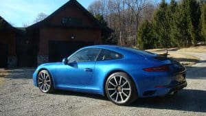 The 2018 Porsche 911 Carrera is not just a beautiful car, it is also a fabulous and fast sports car. Its 3 litre, 370 horsepower engine gives the car a top speed of 183 mph and a 0-60 mph acceleration time of 4 seconds, when equipped with the PDK transmission. Our car is as new throughout and fabulous in its brilliant and rare color scheme of Sapphire Blue Metallic with optional Luxor Beige leather. It is also highly optioned with the fabulous PDK transmission, 20” “Carrera Classic” alloy wheels with different sets of tires for warm and cold weather use, electric tilt and slide sunroof, heated multi-function steering wheel, power folding side mirrors, Bose Surround Sound system, 14 way power sport seats with memory package, lane-change assist, 2-tone leather interior (black accents to the fabulous Luxor Beige leather), voice control, Bi-Xenon self-leveling headlamps, automatically extending, speed-activated rear spoiler, etc. Virtually a new car and has covered fewer than 8,000 miles. The car presents as new inside and out and has full factory warranty remaining until 1/19/2022 or for another 45,556 miles, whichever should occur first. It is accompanied by all original manuals and tools and even its original factory window sticker. 7,444 miles.SOLD!