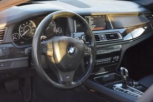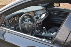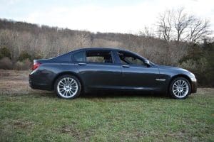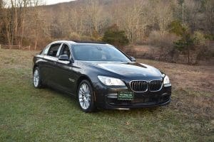 2013 BMW 750Li “M-SPORT, X -DRIVE” SEDAN #WBAYFBC59DD141538. (Stock #4135.) This is an absolutely pristine, one-owner , local example of BMW’s flagship car. Performance, comfort, luxury and style like this do not come without expense—the price of the car new was $101,725 The 4-cam, 32 valve, twin turbo V-8 engine produces 522 horsepower and, with the 8-speed automatic transmission and all-wheel drive, propels the car from 0 to 60 mph in 4 seconds with a top speed electronically limited to 155 mph. For the buyer wanting only the best on his already-exclusive BMW, an “M-Sport” package was available and was ordered on this particular car. Safety features are to be found everywhere from driver and passenger front, front-side and side head curtain and knee airbags, to stability control, huge 4-wheel ABS power disc brakes with electronic brake-force distribution, daytime running lights, blind spot warning system, back-up sensors and camera, rain-sensing wipers, electronic parking assist, fog lights, high intensity headlamps, heads-up display, etc. Luxury and convenience features are all-encompassing, including: driver and passenger multi-adjustable heated seats with driver’s seat memory, adjustable tilt, telescopic and heated steering wheel, heated and air conditioned seats, power windows, sunroof, door locks, rear sunshade, rear seat climate control, factory navigation and premium CD “Surround Sound” stereo system with MP3, satellite, sub-woofer and tweeters, keyless entry, etc. Elegantly finished in Dark Graphite with black Nappa leather, the car has been maintained by the book with one bonus extra—a complete new BMW factory engine at 76,374 miles in 2017. Current mileage is 127,870. SOLD!